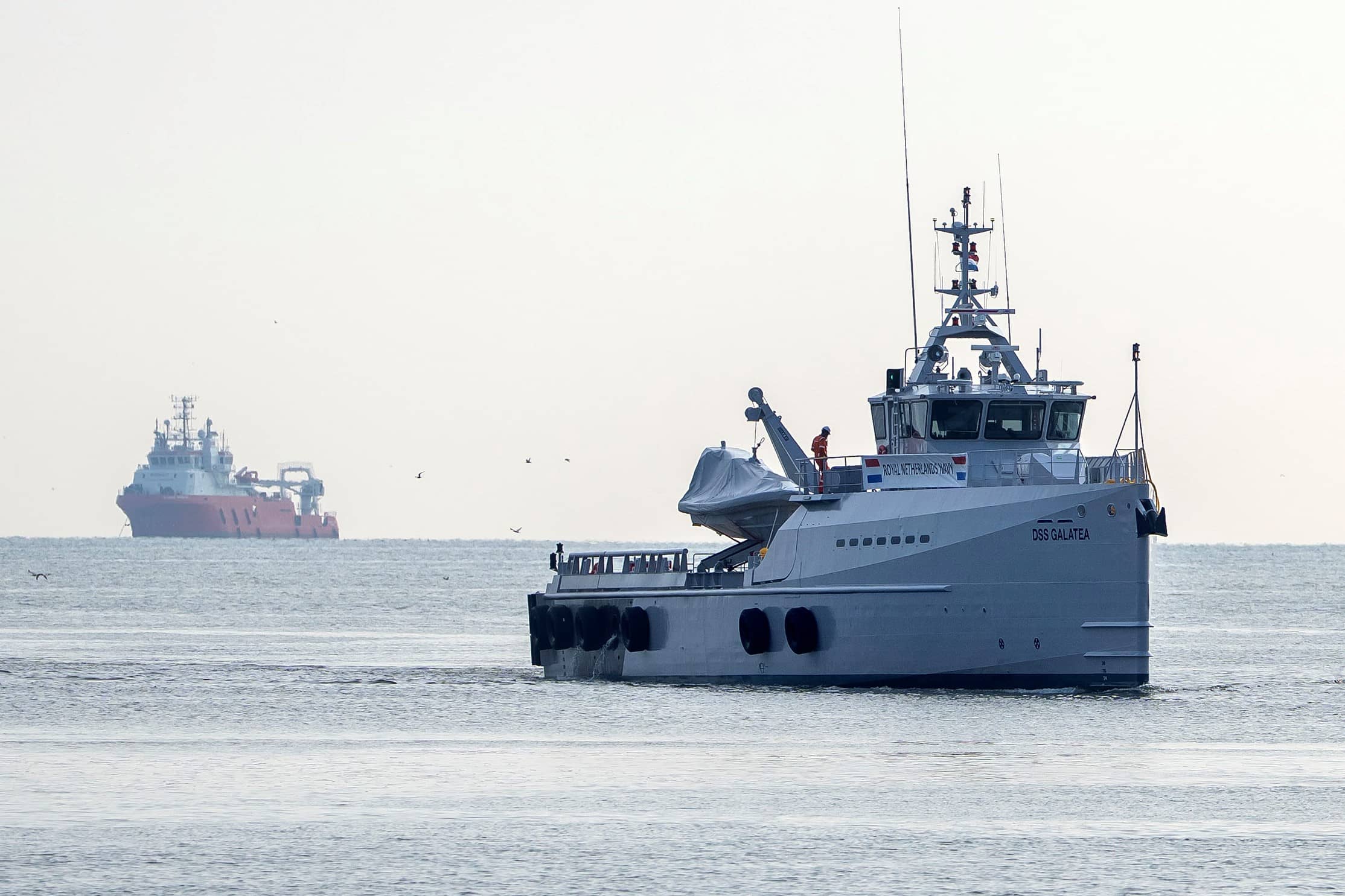 Drones, bootjes en vliegtuigen naderen steeds opnieuw mijnenjager Zr.Ms. Schiedam en andere schepen. Bemanningen strijden tegen ...