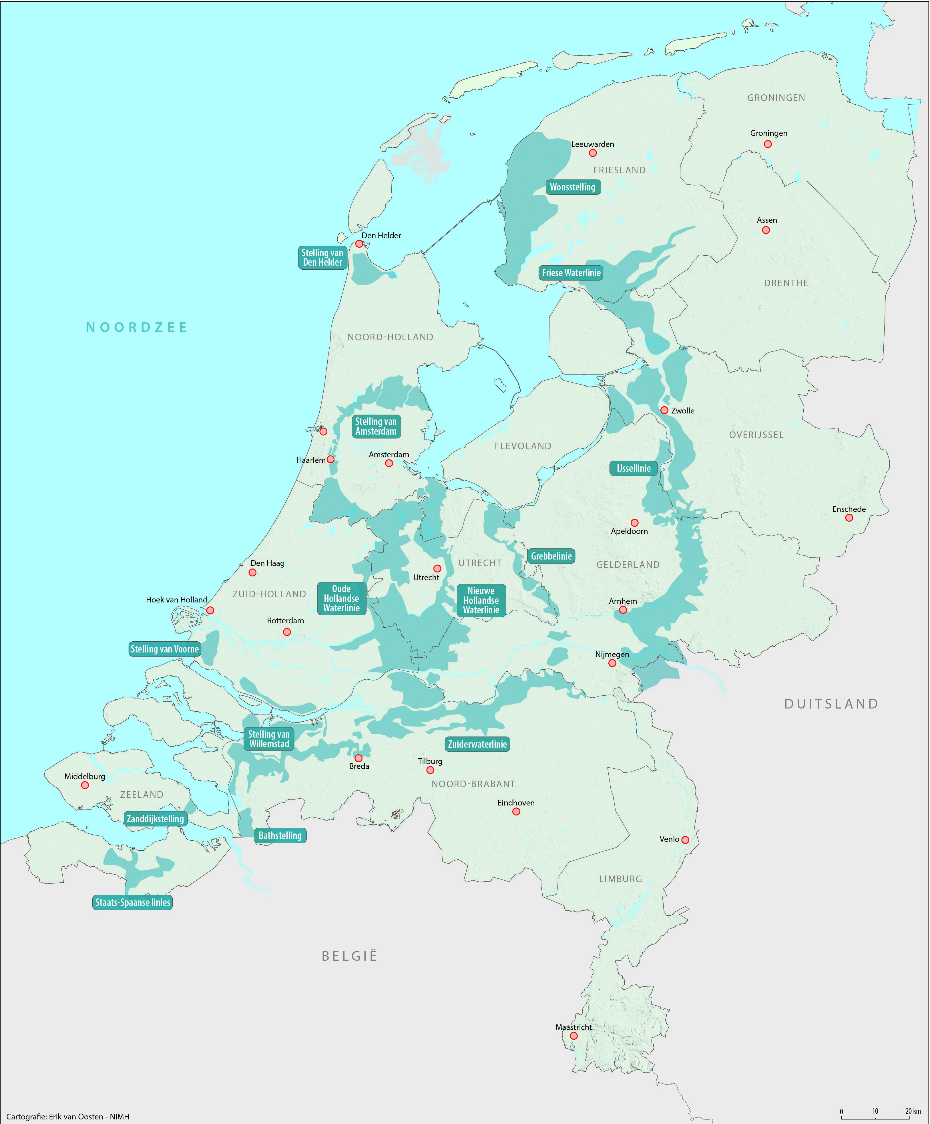 De Nieuwe Hollandse Waterlinie en de Stelling van Amsterdam zijn daar de bekendste voorbeelden van. De laatste waterlinie, de IJssellinie, deed dienst tijdens de Koude Oorlog. Daarna verdween de vestingbouwkundige uit beeld.