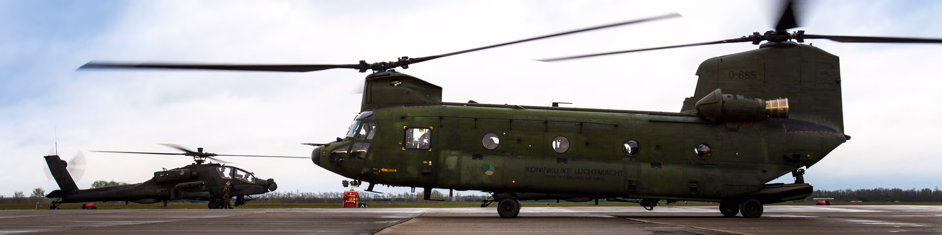 Op Vliegbasis Gilze-Rijen staan 3 verschillende typen helikopters.
